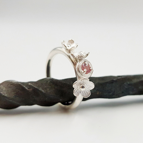 | Matériaux | argent 925/1000 forgé, guilloché, poli, tourmaline rose layette de Madagascar |